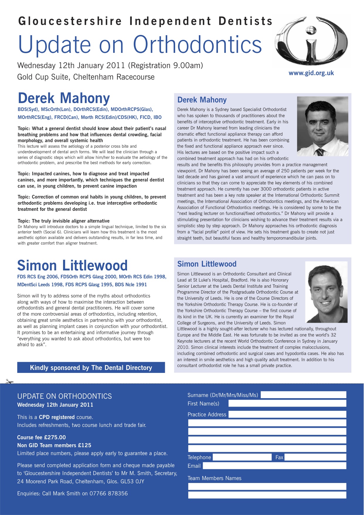 In January Derek Mahony & Simon Littlewood present an “Update in Orthodontics for the GDP”