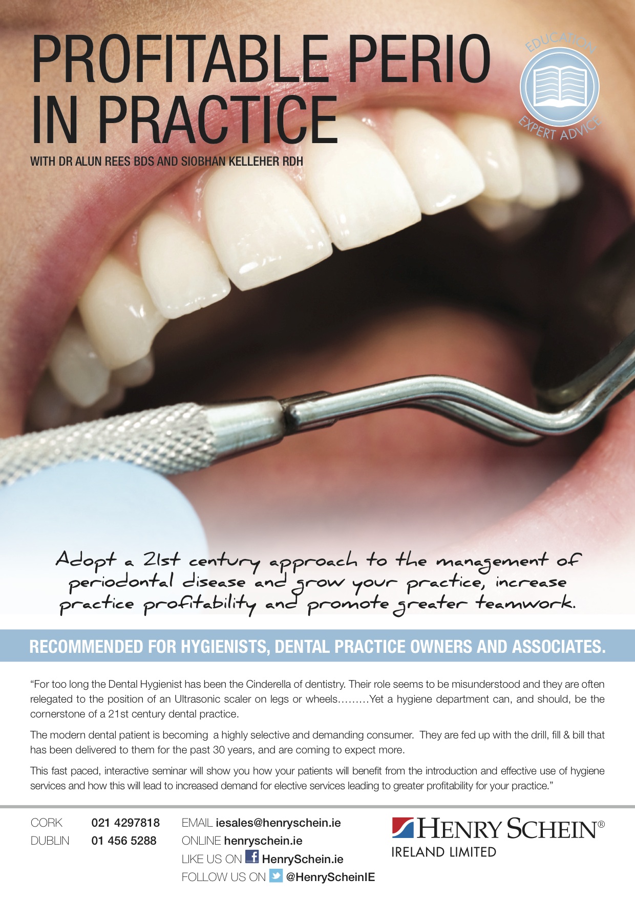 To book for Dublin or Cork go to the Henry Schein website here.