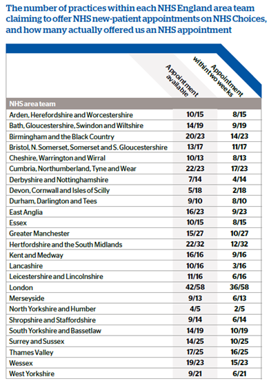 We found the information on NHS Choices is often inaccurate as three in ten (31%) practices turned down our researchers because they didn’t have availability. Of those that did offer us an appointment, 29% couldn’t see us within two weeks, with one surgery saying we could book but we’d be facing a wait of eight to nine months.